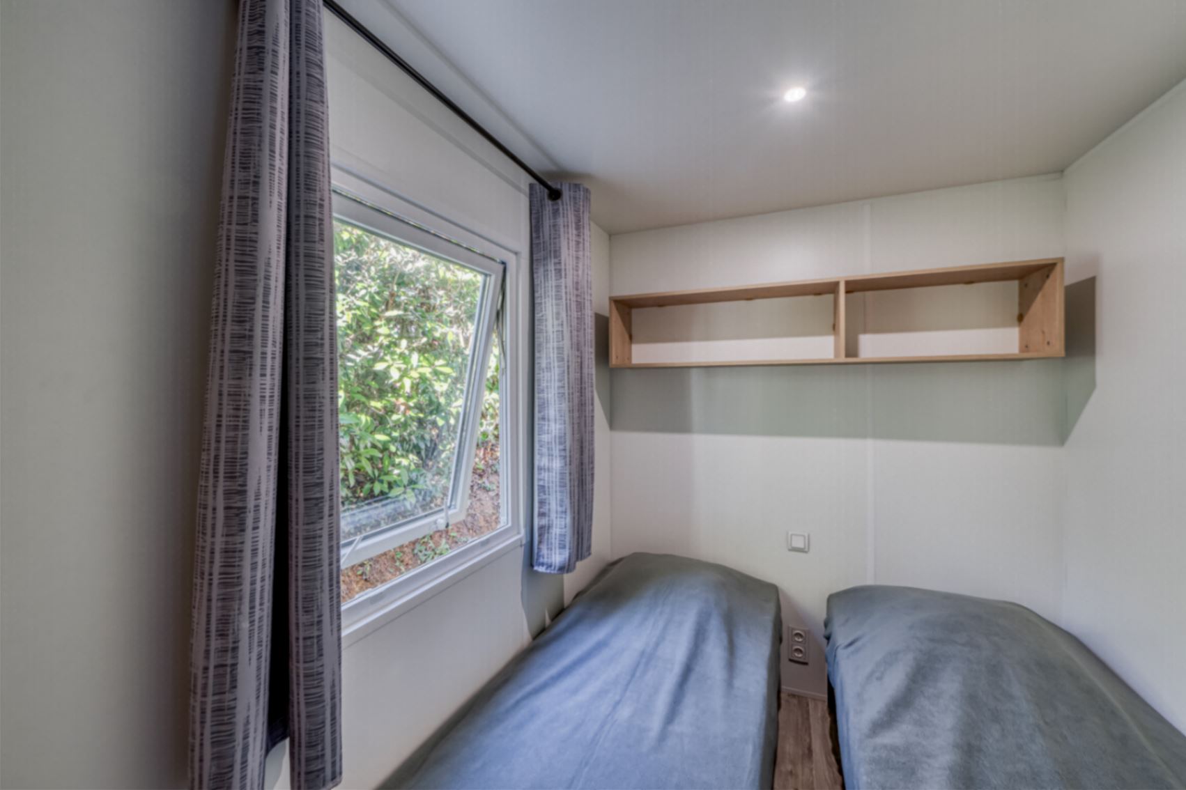 Coin nuit : une chambre avec 1 lit double (140X190), deux chambres avec 2 lits simples (90X190) côte à côte, oreillers et couvertures fournis.